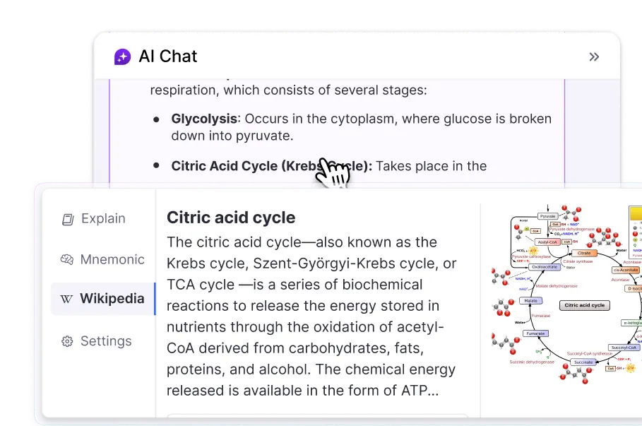 Select text for instant help with clarifications, grammar fixes, edits, or flashcard creation.