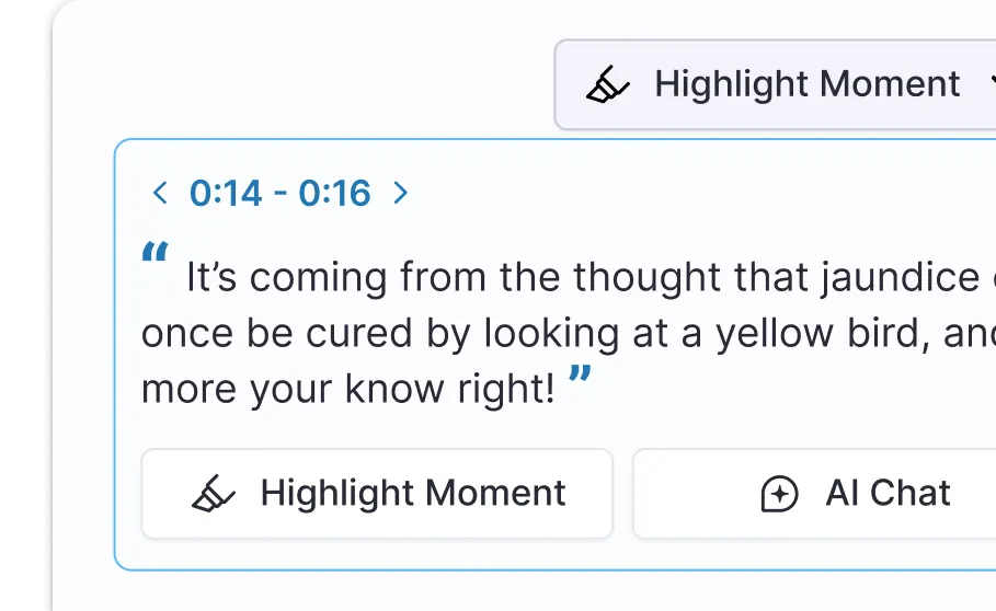 Mark key moments with ease and revisit them in the Highlights panel or as references in your notes.